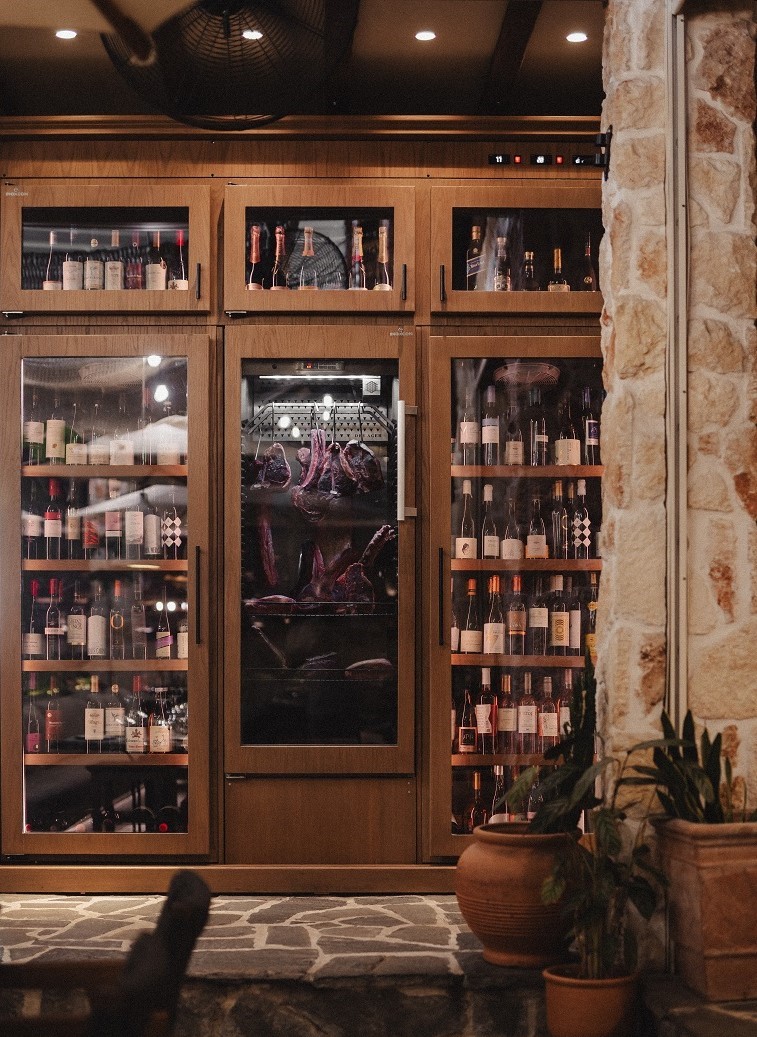 Πέρα από τις επιλογές σε ούζο ή τσίπουρο, την πλούσια κάβα συμπληρώνει και μία μεγάλη γκάμα ετικετών από ελληνικά Κτήματα.