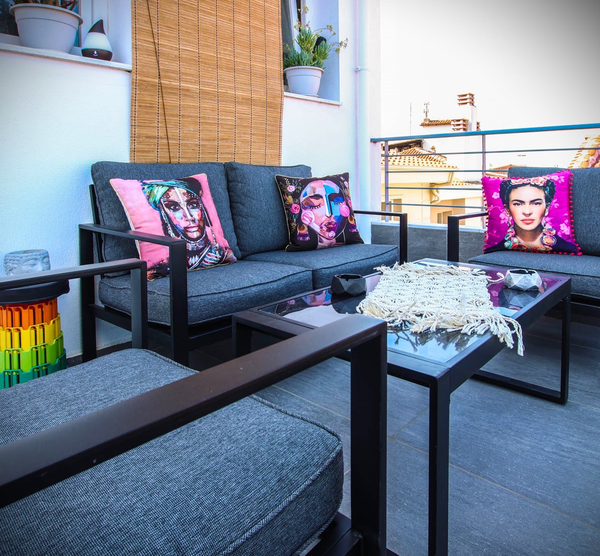 Το επάνω μέρος της αυλής, εμπνευσμένο από τη ζωγράφο Φρίντα Κάλο, προσφέρει πιο prive εμπειρίες, με ιδιαίτερη boho αισθητική και χαλαρή μουσική υπόκρουση.