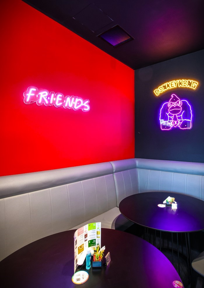 Ο εσωτερικός χώρος του Escape 61 Str. αποτελεί έναν πολύχρωμο καμβά γεμάτο pop κουλτούρα και νοσταλγικές αναφορές. Νέον επιγραφές, θεματικά διακοσμημένα σαλόνια όπως το «κόκκινο» και το «μπλε» εμπνευσμένα από τη σειρά FRIENDS, αφίσες με σούπερ-ήρωες και τραπέζια γεμάτα επιτραπέζια παιχνίδια συνθέτουν το σκηνικό. Είναι το ιδανικό μέρος για να χαλαρώσετε, να παίξετε, να γελάσετε και να ξαναγίνετε παιδί, όποια κι αν είναι η ηλικία σας.