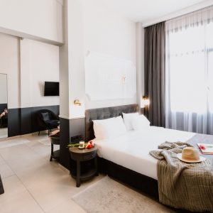 Στα highlights των studios η χαριτωμένη βεράντα που τρυπώνει κατευθείαν στο κέντρο της πόλης, δίνοντας μία άλλη προοπτική του.
