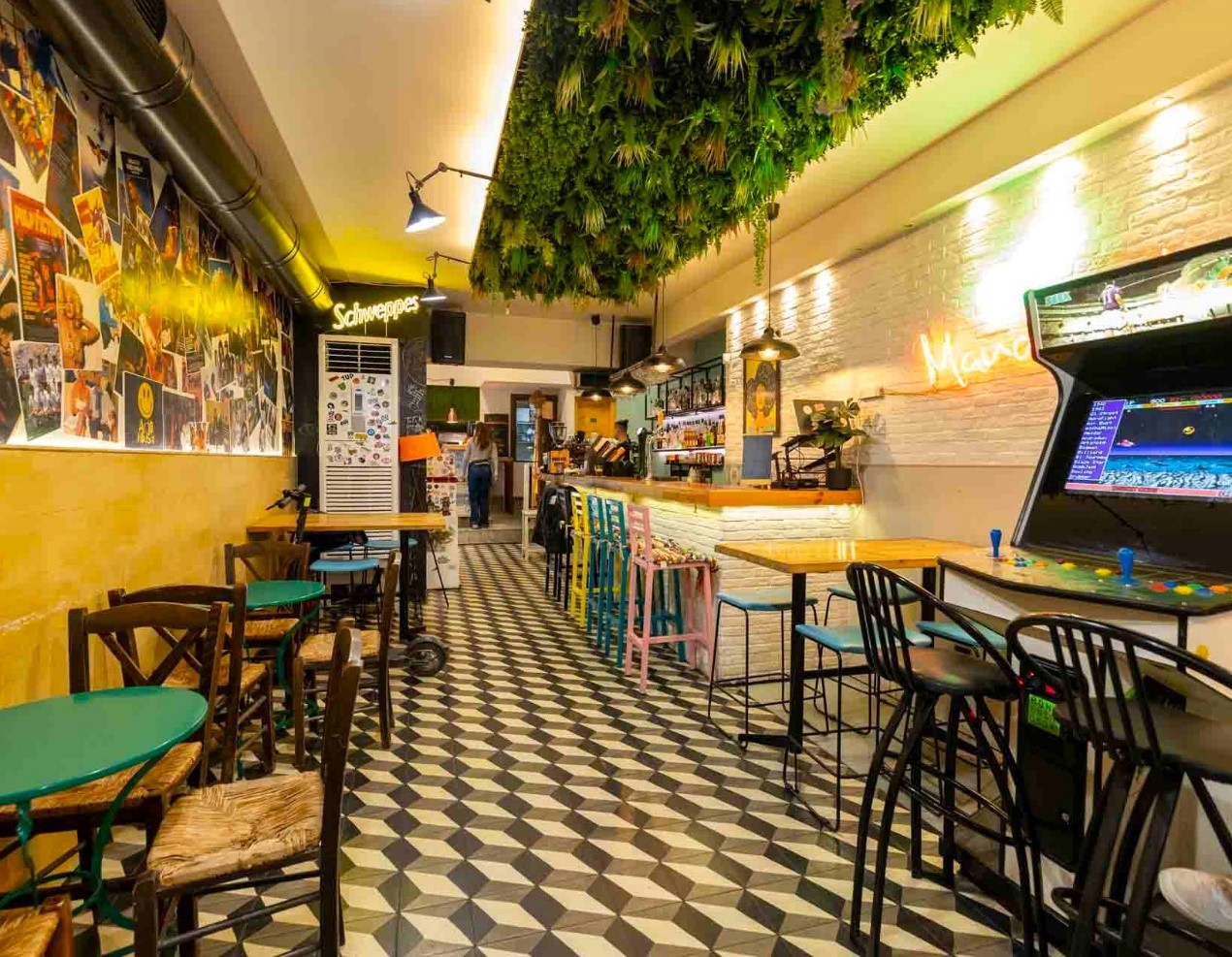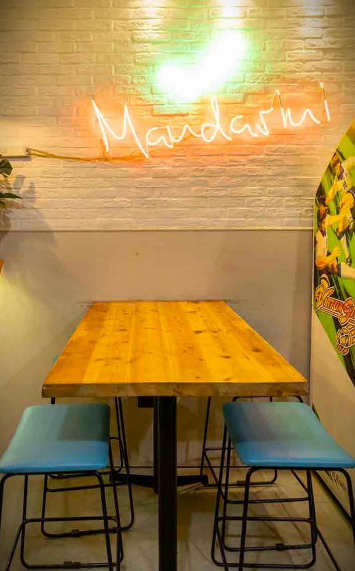 Από την πρώτη ματιά, το Mandarini SKG σε κερδίζει με την αισθητική του. Το εσωτερικό του χώρου ισορροπεί ανάμεσα στο σύγχρονο και το νοσταλγικό: ένας τοίχος είναι καλυμμένος με αφίσες των δεκαετιών ’70, ’80 και ’90, αποτυπώνοντας έναν pop-retro χαρακτήρα που σε ταξιδεύει, ενώ ένας άλλος λειτουργεί ως μαυροπίνακας γεμάτος σκίτσα, σημειώσεις και μηνύματα των θαμώνων. Το αποτέλεσμα; Ένας ζωντανός πίνακας από μικρές ιστορίες και στιγμές, που συνεχώς αλλάζει και εμπλουτίζεται.