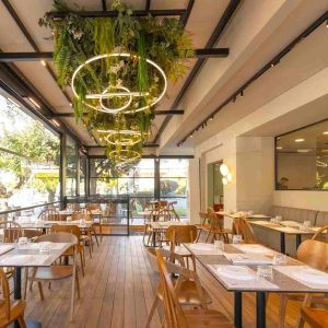 Ο χώρος, minimal με ήπια classy αισθητική και σύγχρονη διακόσμηση στην πιο urban γωνία της πόλης, παίζει με μάρμαρο και ξύλο και αφήνει τις πελώριες τζαμαρίες να δίνουν όλο το φως.