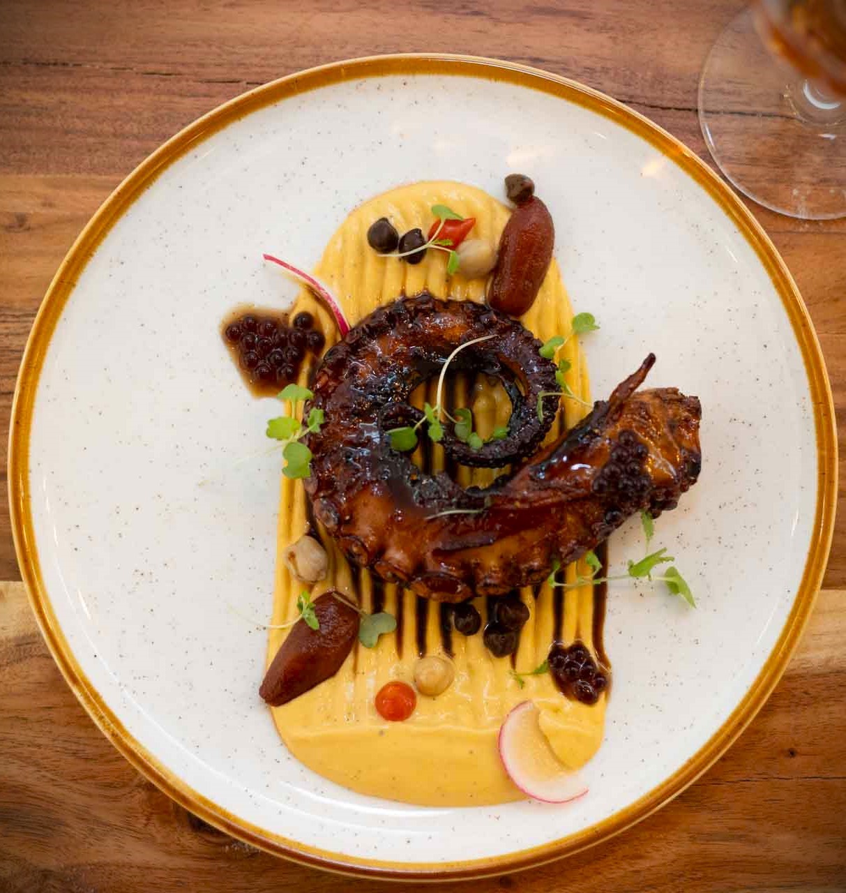 Στις γεύσεις που ξεχωρίζουν συναντάμε το καρπάτσιο λαυράκι με άρωμα καλοκαιριού, το μελωμένο χταπόδι – λιώνει στο στόμα – το μιλφέιγ με τυριά, με τη λαχταριστή κρεμώδη υφή, αλλά και την κροκέτα μοσχαρίσιου ραγού, μία πρόταση που ισορροπεί ανάμεσα στη νοσταλγία της παράδοσης και τη μοντέρνα δημιουργική κουζίνα.