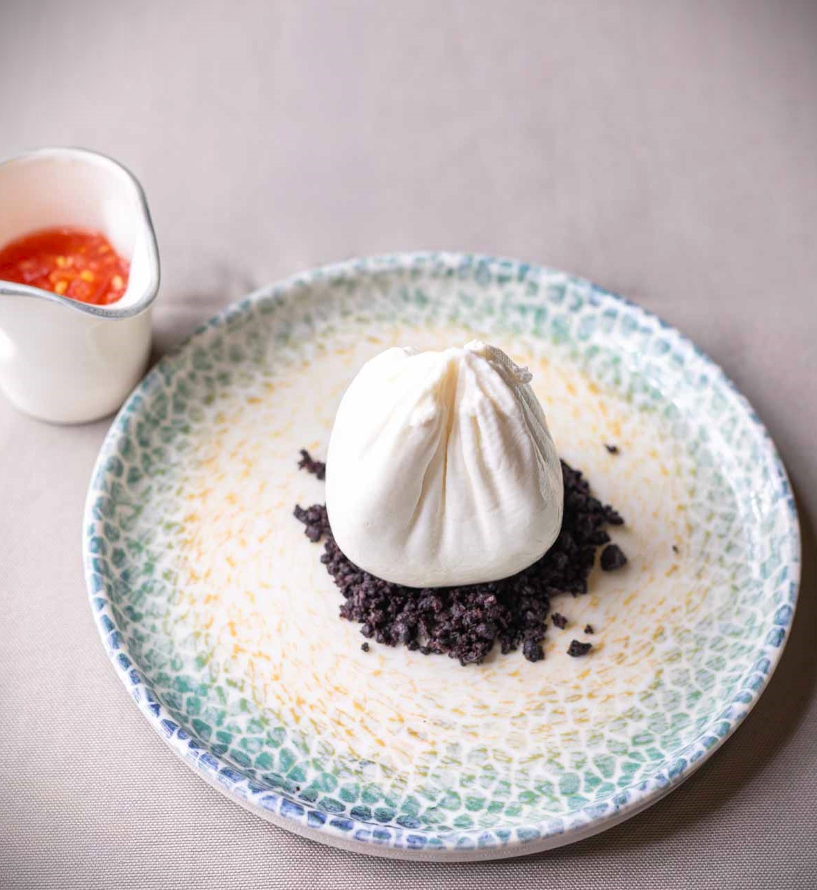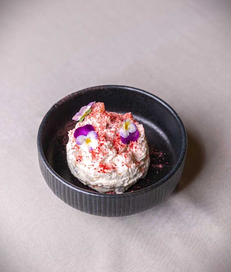 Στα πιο πρόσφατα πιάτα, θα βρείτε τα Κρητικά Bao Buns, τα αλμυρά λουκουμαδάκια με chutney κρητικής τομάτας και μαγιονέζα μαστίχας και το χαρακτηριστικό χειροποίητο λευκό τυρί σε τσαντίλα, που σερβίρεται με σούπα ντομάτας, «χώμα» ελιάς Καλαμών κι άγρια ρίγανη στα ορεκτικά, ένα signature πιάτο, που έρχεται να φέρει τη “γη και τη φωτιά” στο ίδιο πιάτο και που θα σας μαγέψει.