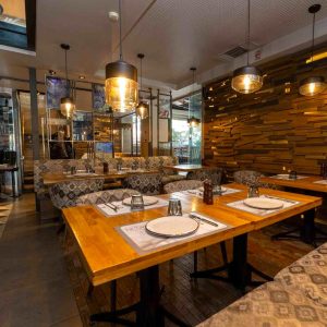 Η ποιότητα υπερέχει σε κάθε τομέα, από τα υλικά και την παρασκευή των πιάτων του μενού – που ξεκίνησε να στήνεται με επιρροές από την απλότητα της αγιορείτικης κουζίνας χάρη στον πρώτο ιδιοκτήτη – μέχρι το σέρβις. Ξύλινα τραπέζια, σώματα θέρμανσης έξω, τραπεζάκια περιφερειακά του εστιατορίου, τόσο στην οδό Κατούνη, όσο και στην οδό Αιγύπτου, ατμόσφαιρα φιλική και διάχυτη και τα οινοπνεύματα να ρέουν άφθονα, συνοδεύοντας ευχάριστα τις γεύσεις στα τραπέζια.