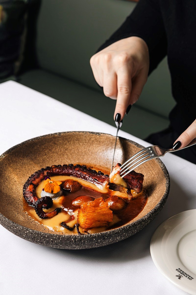 Άλλα κλασικά πιάτα, όπως το χουνκιάρ μπεγεντί που φτιάχνεται με κανόλι καπνιστής μελιτζάνας και τρυφερά μοσχαρίσια κοκκινιστά μάγουλα, επαναφέρονται με μια πιο εκλεπτυσμένη αίσθηση, χωρίς να χάνουν την αυθεντικότητά τους, κάνοντας τη σύνδεση με το παρελθόν να είναι και μοντέρνα.