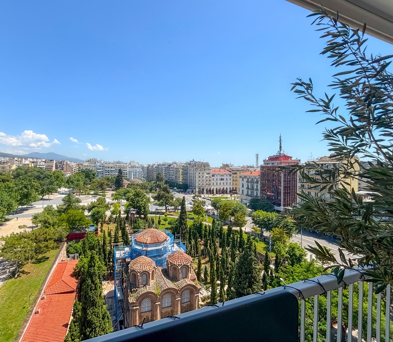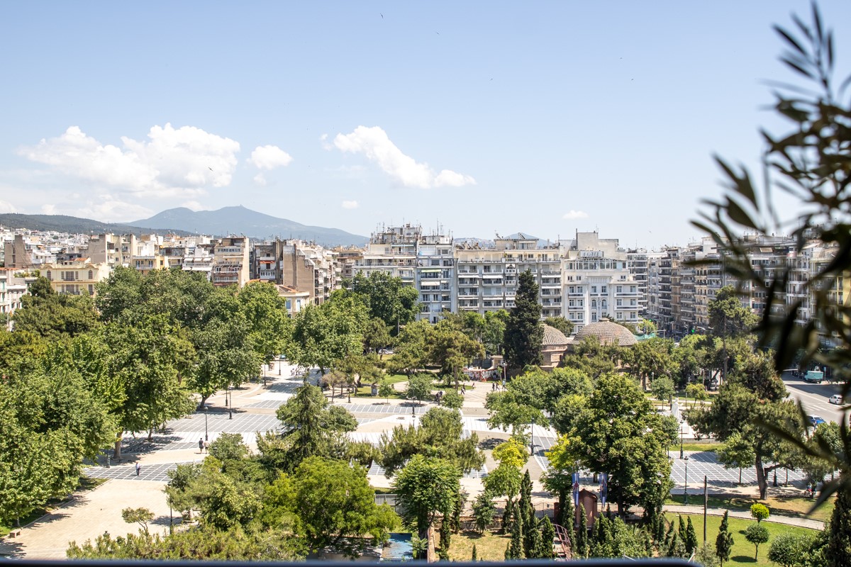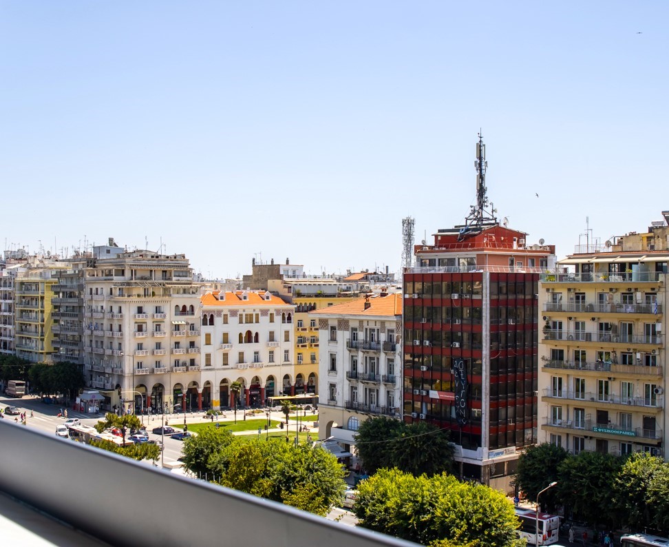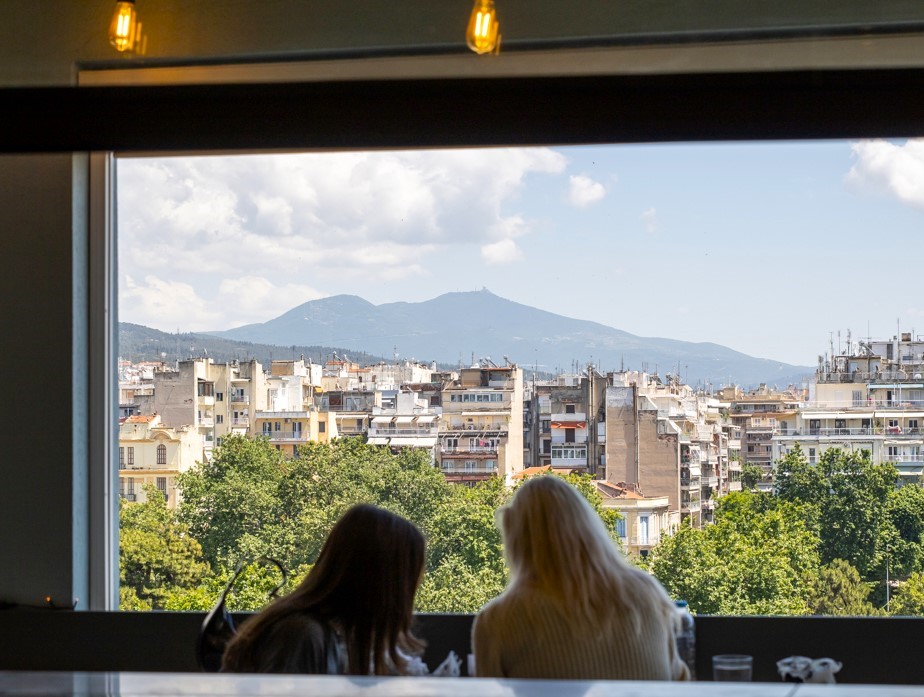 Με θέα στην πλατεία Αριστοτέλους, τα “Λουτρά Παράδεισος” και την Παναγία Χαλκέων, τη Ρωμαϊκή Αγορά και τους γύρω δρόμους, αλλά και στον ορίζοντα μέχρι το Χορτιάτη, όπως μόνο από εδώ μπορείτε να απολαύσετε!