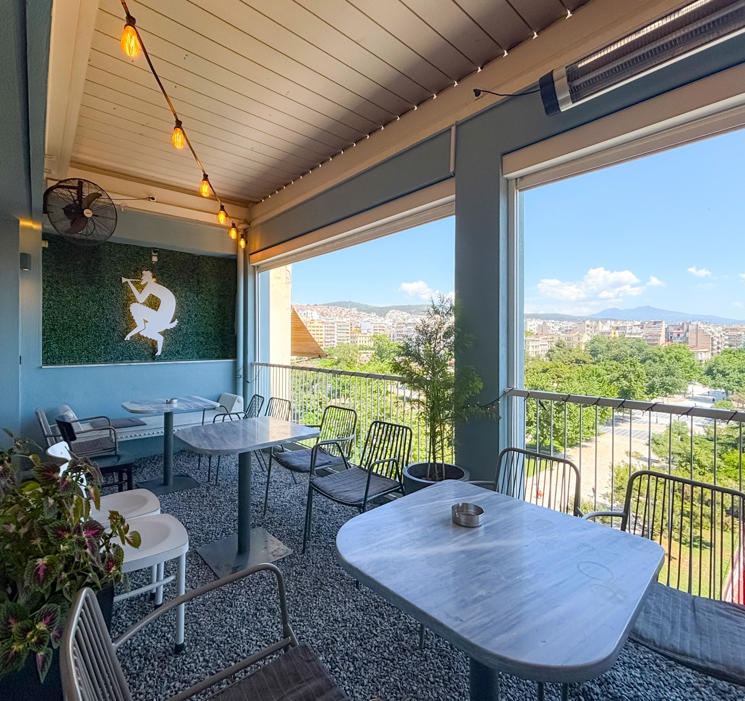 Στο φοβερό μικροκλίμα του έβδομου ορόφου, που το χειμώνα σας εξασφαλίζει ζέστη και το καλοκαίρι δροσιά, χάρη στη βιοκλιματική πέργκολα που διαθέτει, συχνάζει κόσμος από όλη τη Θεσσαλονίκη και πολλοί επισκέπτες της που, είτε διαμένουν στο hostel, είτε έρχονται ως εδώ για έναν απολαυστικό καφέ ή το αγαπημένο τους ποτό, με θέα σε όλη την πόλη – δεν είναι λίγοι, μάλιστα, αυτοί που αυθόρμητα … μετακομίζουν εδώ, αφού μαγεύονται από τις παροχές.