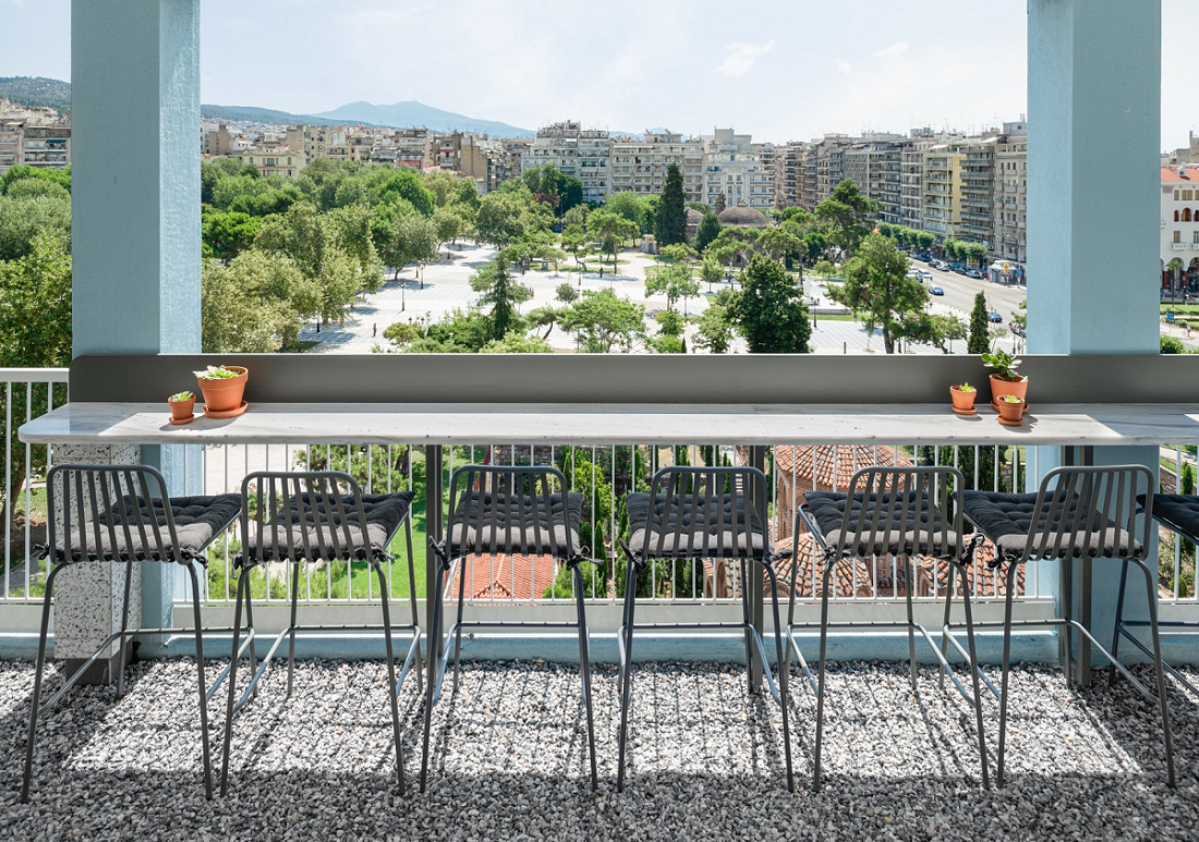 Με θέα στην πλατεία Αριστοτέλους, τα “Λουτρά Παράδεισος” και την Παναγία Χαλκέων, τη Ρωμαϊκή Αγορά και τους γύρω δρόμους, αλλά και στον ορίζοντα μέχρι το Χορτιάτη, όπως μόνο από εδώ μπορείτε να απολαύσετε!