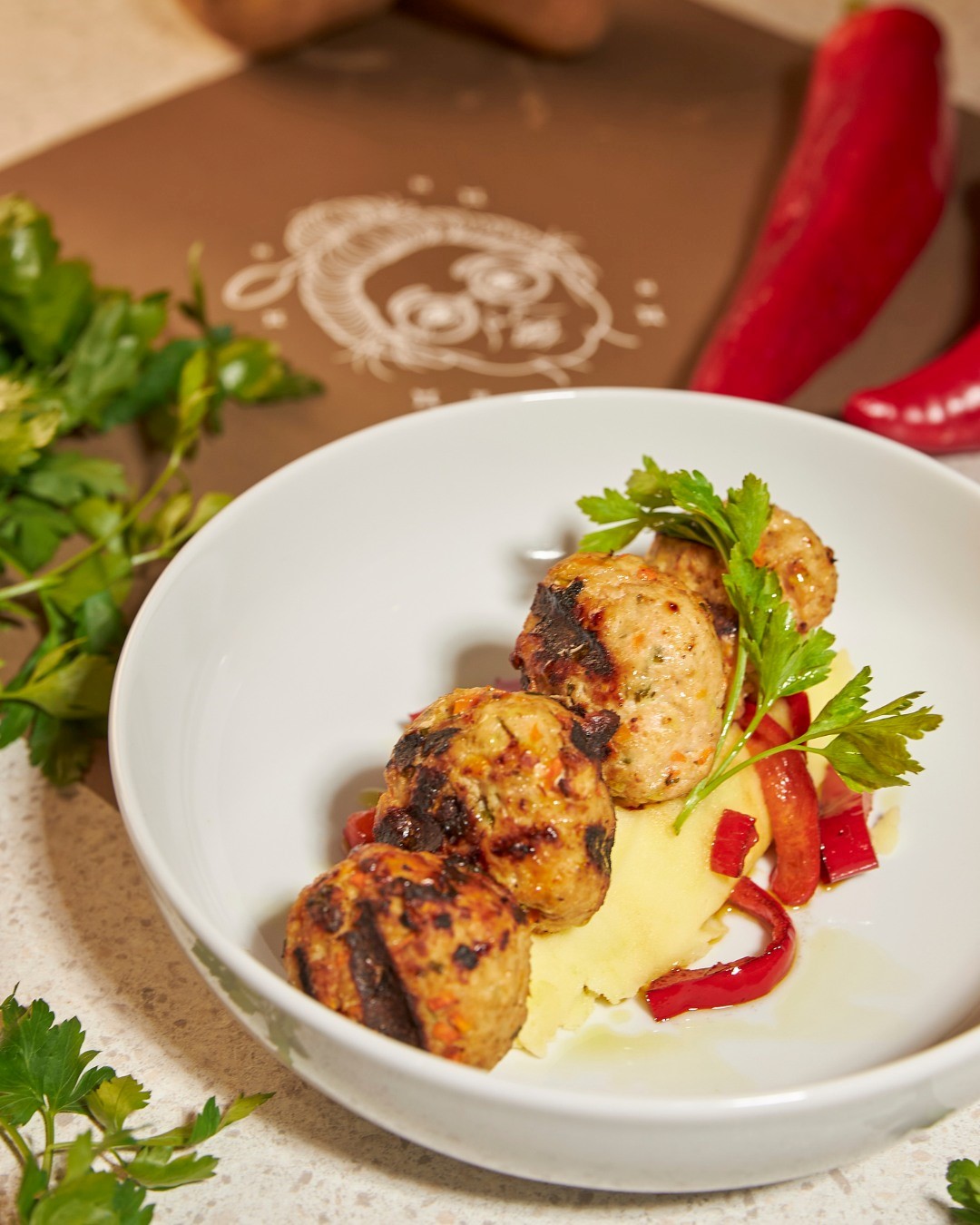 Στα κρεατικά, ξεχωρίζουν σίγουρα το λουκάνικο – είναι άλλωστε το best seller τους – τα κεφτεδάκια κοτόπουλο, τα σουτζουκάκια, ο μοσχαρίσιος σιδηρόδρομος, οι πανσέτες και το χοιρινό καρέ, με πρώτες ύλες από φάρμες της Χαλκιδικής. Στα θαλασσινά, πάλι, ζητήστε το γιουβέτσι θαλασσινών και τη γαριδομακαρονάδα.