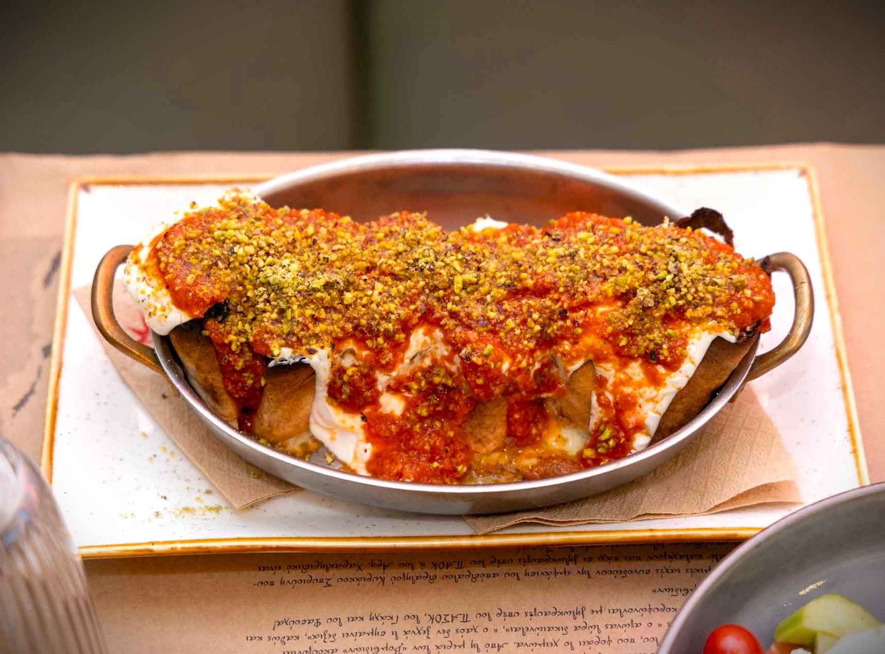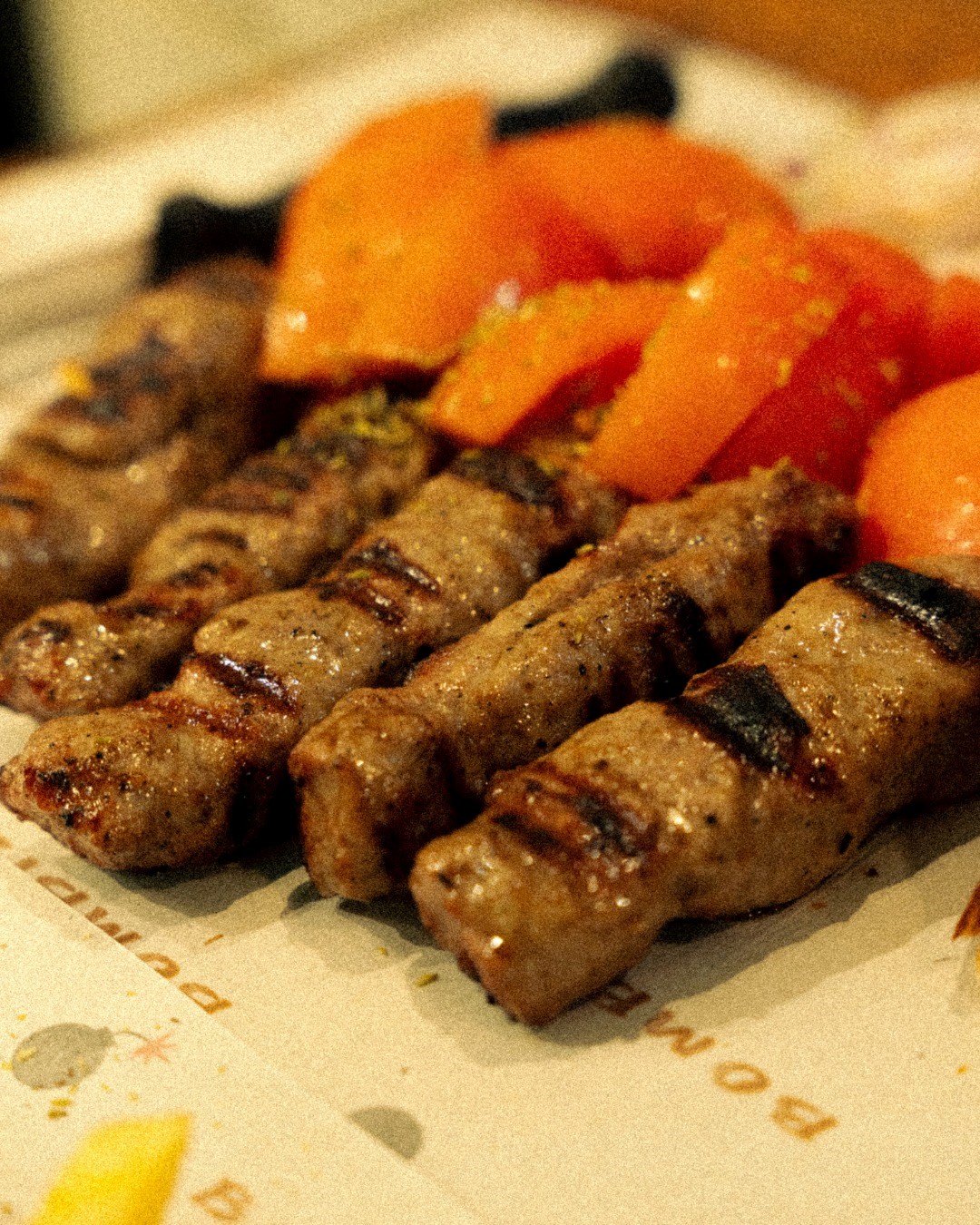 Στο μενού εδώ, θα συναντήσετε έναν πιο ανατολίτικο και μερακλίδικο τόνο: χαρακτηριστικό πιάτο το άδανα κεμπάπ με “βομβίδια” – τυλιγμένο σε τορτίγια που ψήνεται στο φούρνο, με κόκκινη σάλτσα, γιαούρτι, φυστίκι και λιωμένο βούτυρο. Ένα πιάτο-ταξίδι στην Ανατολή, σε μία συνταγή που φέρει ξεκάθαρα την την υπογραφή των «Βομβιδίων».