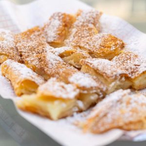 unfold and passers-by pause for a delightful “Macedonian bougatsa,” chosen by