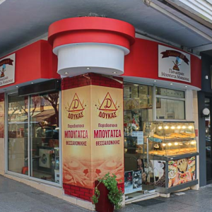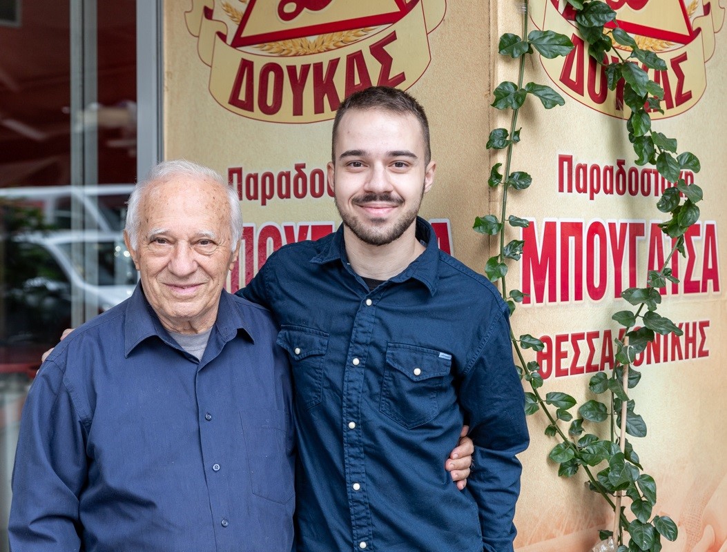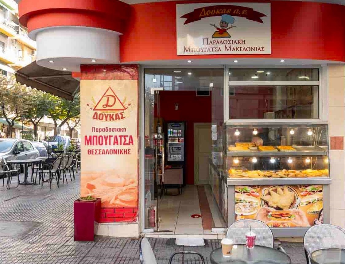 “Bougatsa Doukas” is among the flavors of Thessaloniki that need no introduction. On the corner of Ethnikis Amynis, opposite the Central Library, from 1981—when grandfather Thanasis Poulios opened the first small shop—until today, with the third generation at the wheel, the business has evolved without ever losing the reason it became beloved: the authentic, handmade bougatsa with its traditional taste that makes it stand out.