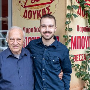 “Bougatsa Doukas” is among the flavors of Thessaloniki that need no introduction. On the corner of Ethnikis Amynis, opposite the Central Library, from 1981—when grandfather Thanasis Poulios opened the first small shop—until today, with the third generation at the wheel, the business has evolved without ever losing the reason it became beloved: the authentic, handmade bougatsa with its traditional taste that makes it stand out.
