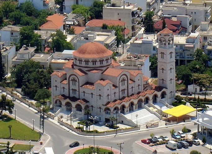 in the background and the blue expanse of the Thermaic Gulf stretching out