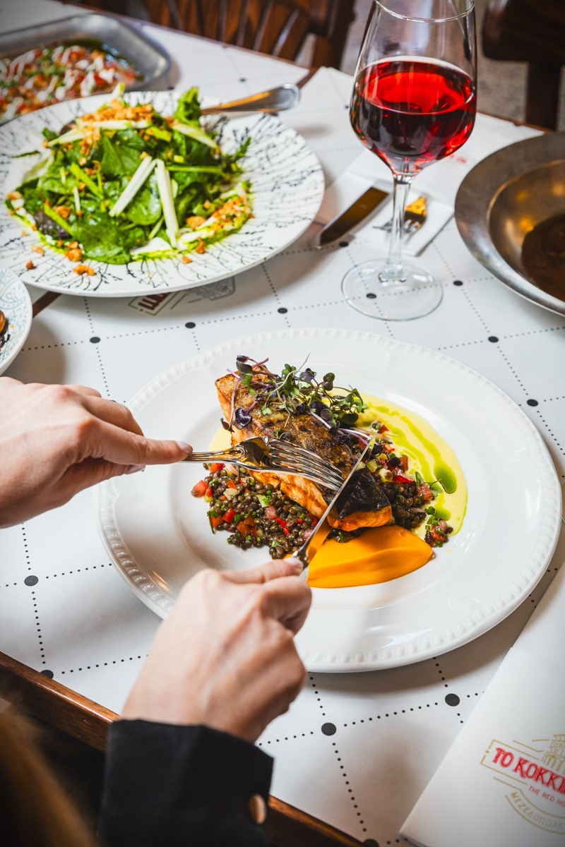 “The Red House” is an ode to Thessaloniki: polyphonic, tasty, welcoming. The flavors it serves carry memories of neighborhoods and seasons and are prepared with products from every corner of Greece, bringing multicultural influences that run through every dish, from the first appetizer to the dessert.