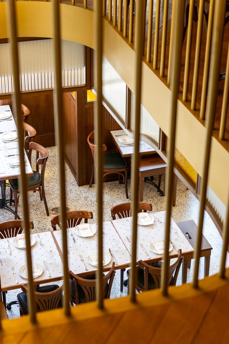 Inside, the photographic decoration takes visitors to earlier decades, while the space is dominated by wood and details that remind of something from the past – such as the light bulbs and the wooden seats. The atmosphere is unique, endearing and pleasant, for any visitor.