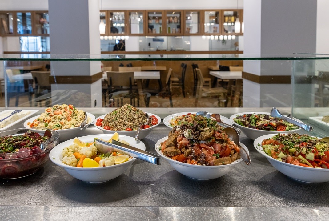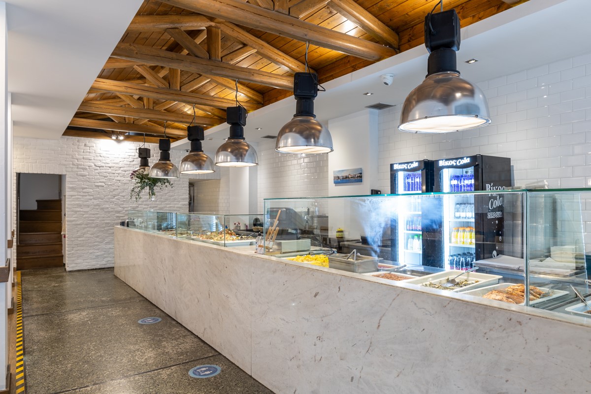 The large buffet that awaits you daily includes dishes cooked in oil, meats, fish, minced meat and legumes, hot and nutritious soups of the day and a total of countless choices to satisfy every taste. Especially the salad bar, filled with fresh seasonal salads, complements your table in the best and healthiest way.