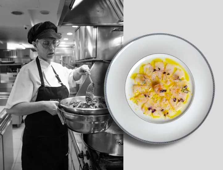 From the exceptional handmade taramas, the Thermaikos shrimp — from the waters stretching from the Gulf to the coasts of Pieria and the Larissa region — to shellfish, crab, grilled or steamed or tomato-braised or carpaccio sea bream from Thermaikos, fish tartare, shrimp or langoustine tartare, lobster salad, mussels in the shell, bottarga, sea urchin, and grilled Atlantic scallops — everything is prepared with extra virgin olive oil, freshly squeezed lemon, high-quality salt, and carefully selected pepper from Greek producers and suppliers.