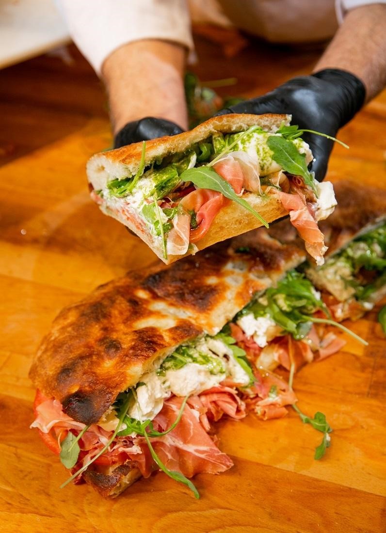 The first is the panini with 12-month aged Parma prosciutto and burrata — a harmonious combination where the fine cured meat meets creamy