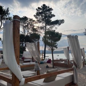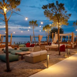 The well-curated wine list includes selections from Santorini, Pangaio, Peloponnese, Halkidiki, and Thessaloniki, while the refreshing cocktails are specially crafted to complement the summer dishes. For discerning guests, there’s also a fine cigar collection.