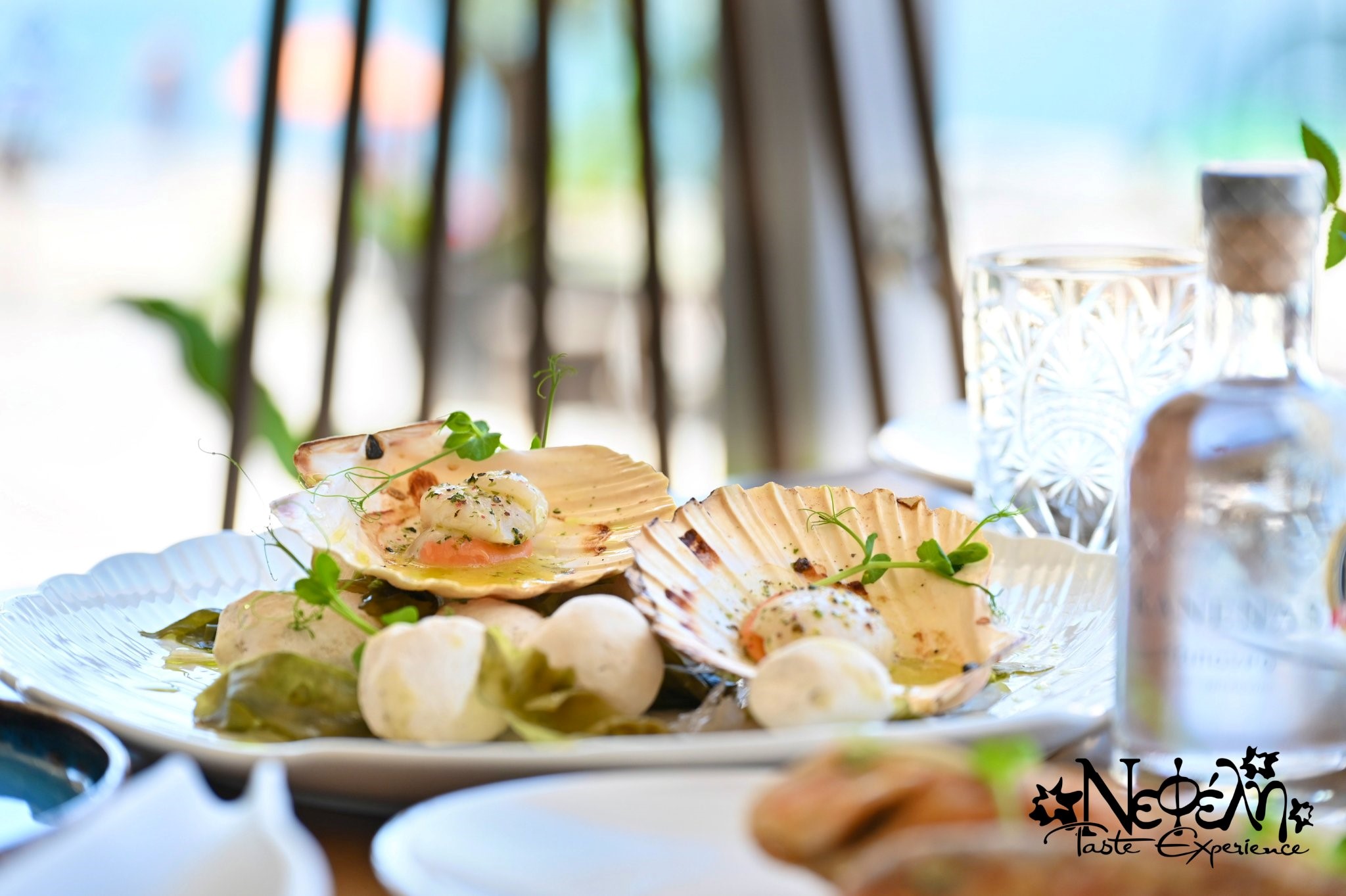 The restaurant’s menu is updated daily, and the summer offerings are a true homage to the sea and its abundant gifts. Dishes like sea bass carpaccio, beef tartare with mustard ice cream, and raw wagyu provide a luxurious experience. Garlic butter shrimp, seafood pastas, and rich risottos showcase the restaurant’s expertise in seafood cuisine.