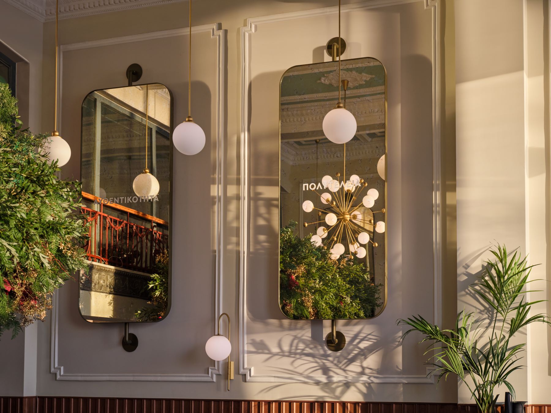 The historic building at 5 Nikis Avenue, an example of eclectic architecture from the 1920s, has been meticulously restored with respect and sensitivity. Authentic decorative elements, mosaics, and wooden paneling have been preserved, while the interior design has been renewed with contemporary materials and lighting that highlight its historic character. The result is a unique setting where the elegance of the past meets the understated luxury of the present — an ambience that seems to address each guest personally.