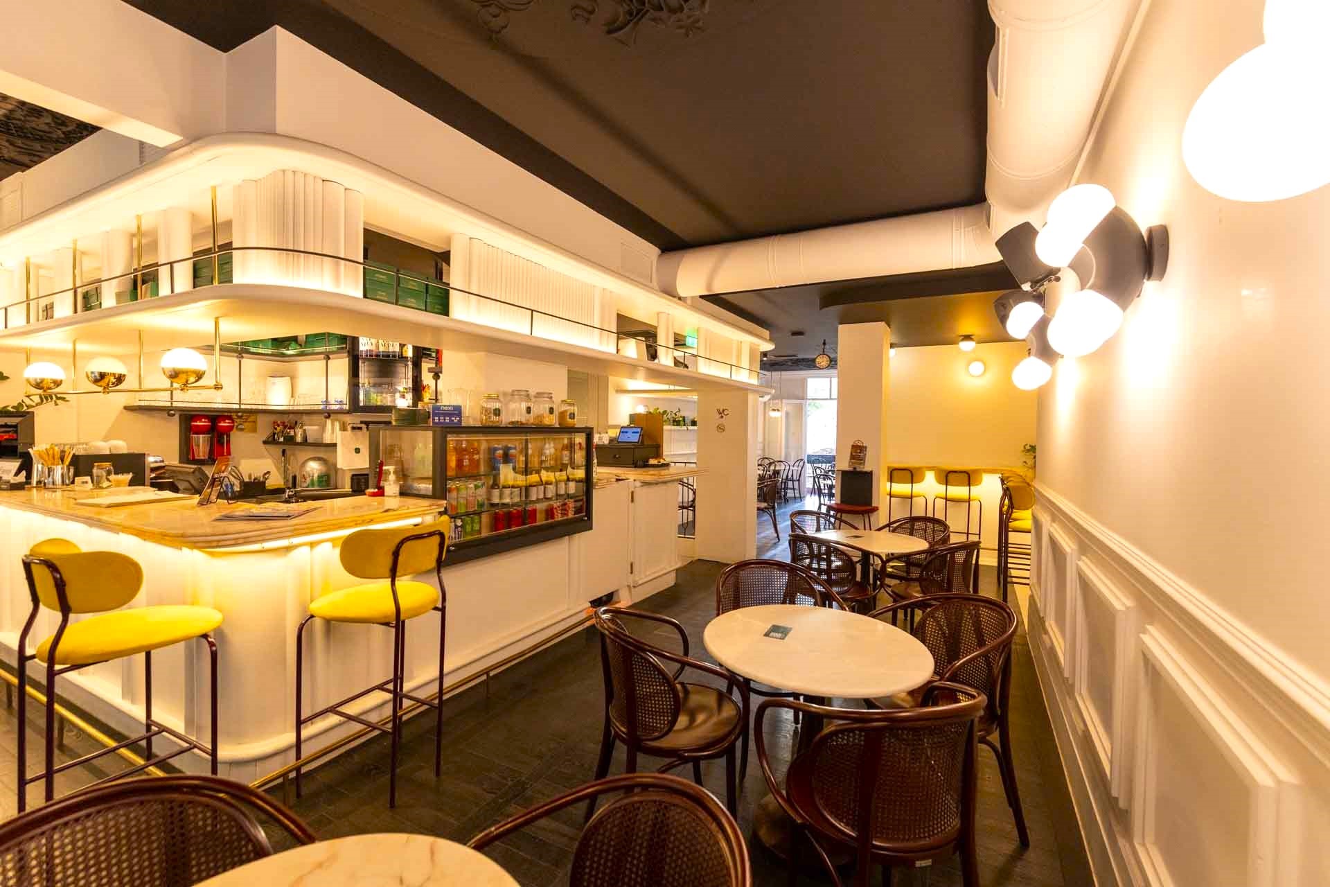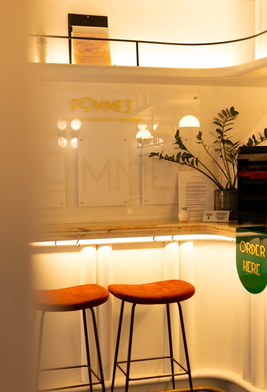 Pommes is not your typical street food joint. The moment you step inside, it’s clear that something different is going on here. The space is minimal and elegant, with bright colors, clean lines, and a calm atmosphere. The combination of wood and metal creates a setting that strikes a balance between urban and cozy.