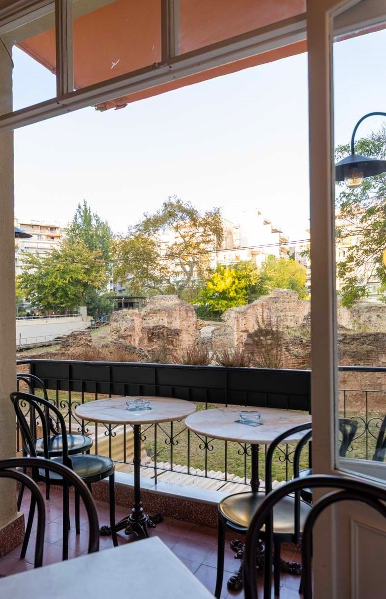 And of course, there’s the signature balcony — one of the shop’s highlights — overlooking the Summer Palace of Galerius. There, the afternoon light and city sounds merge into an ambiance that makes you want to linger a little longer, savoring every bite as if you were in a small courtyard in Thessaloniki.