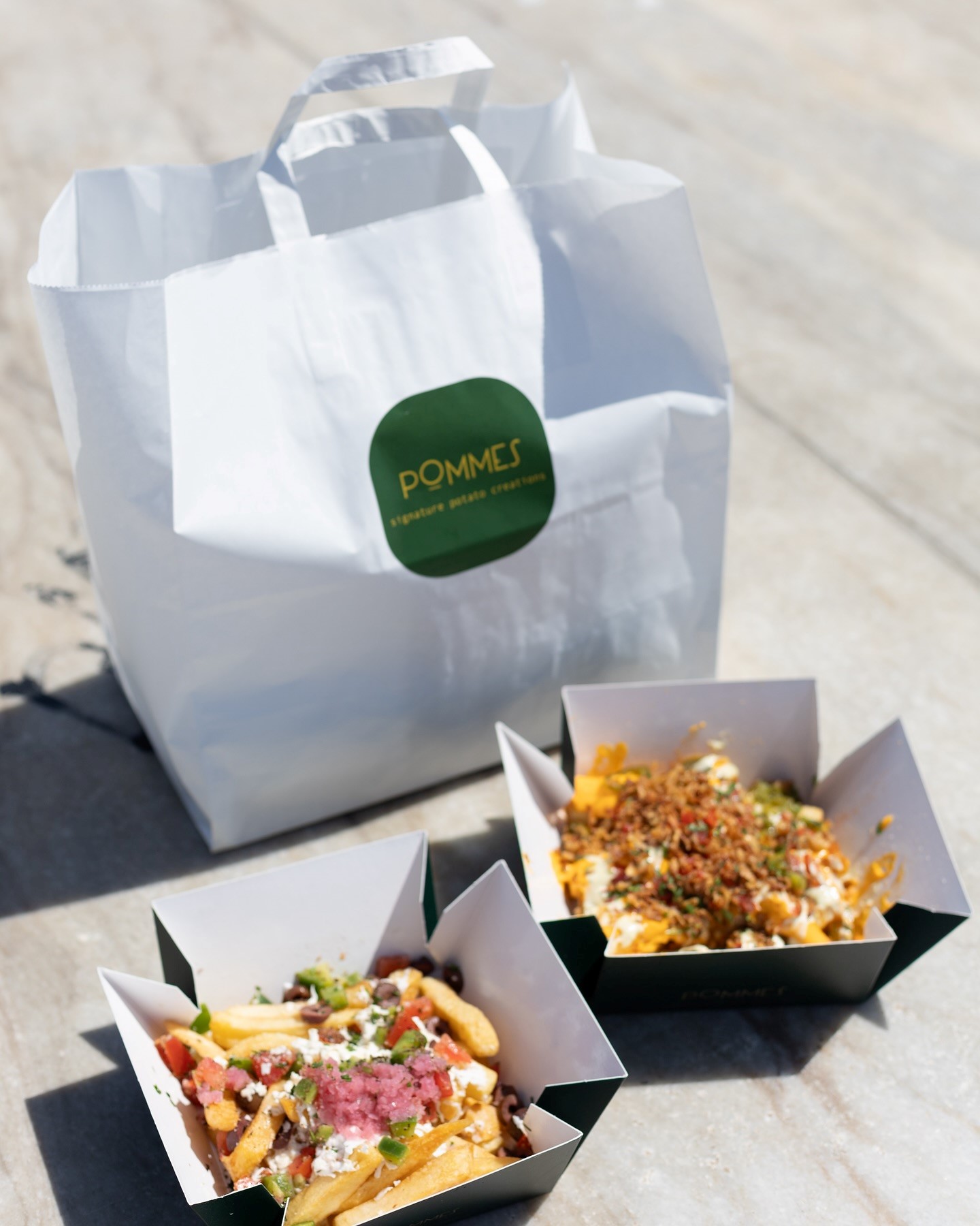 The foundation of Pommes is the fresh, Greek, hand-cut potato. Masterfully fried and paired with combinations that blend tradition with contemporary culinary artistry. Fries meet flavors inspired by classic Greek dishes like horiatiki salad or moussaka, as well as imaginative gourmet interpretations featuring sauces, caramelized toppings, or spicy touches.