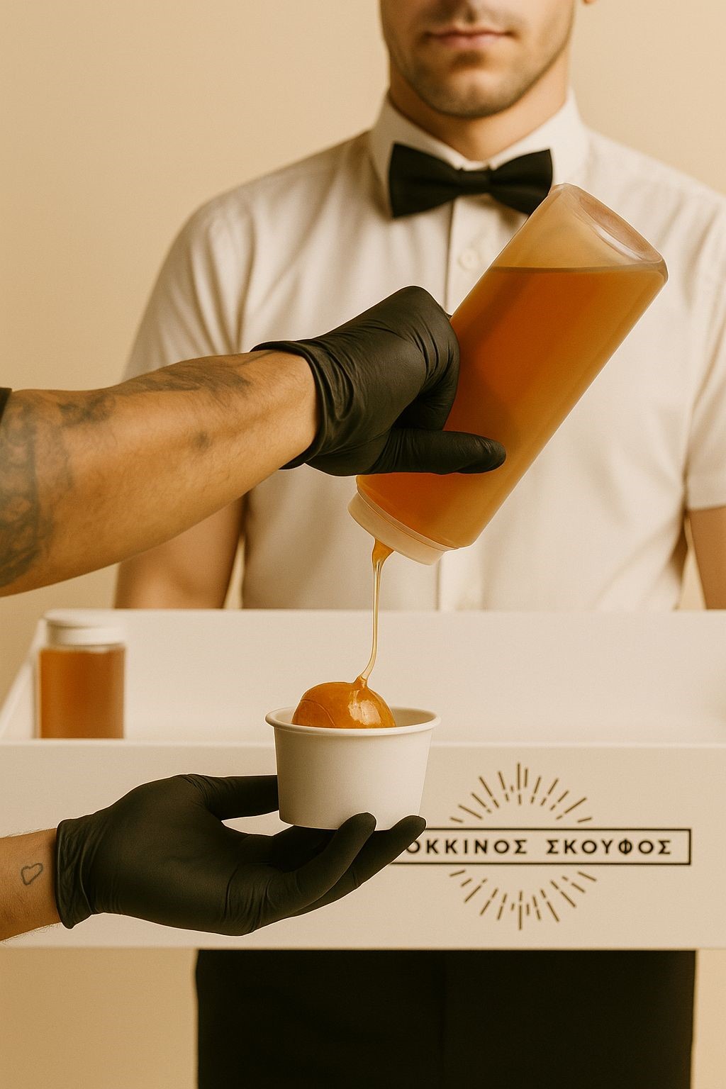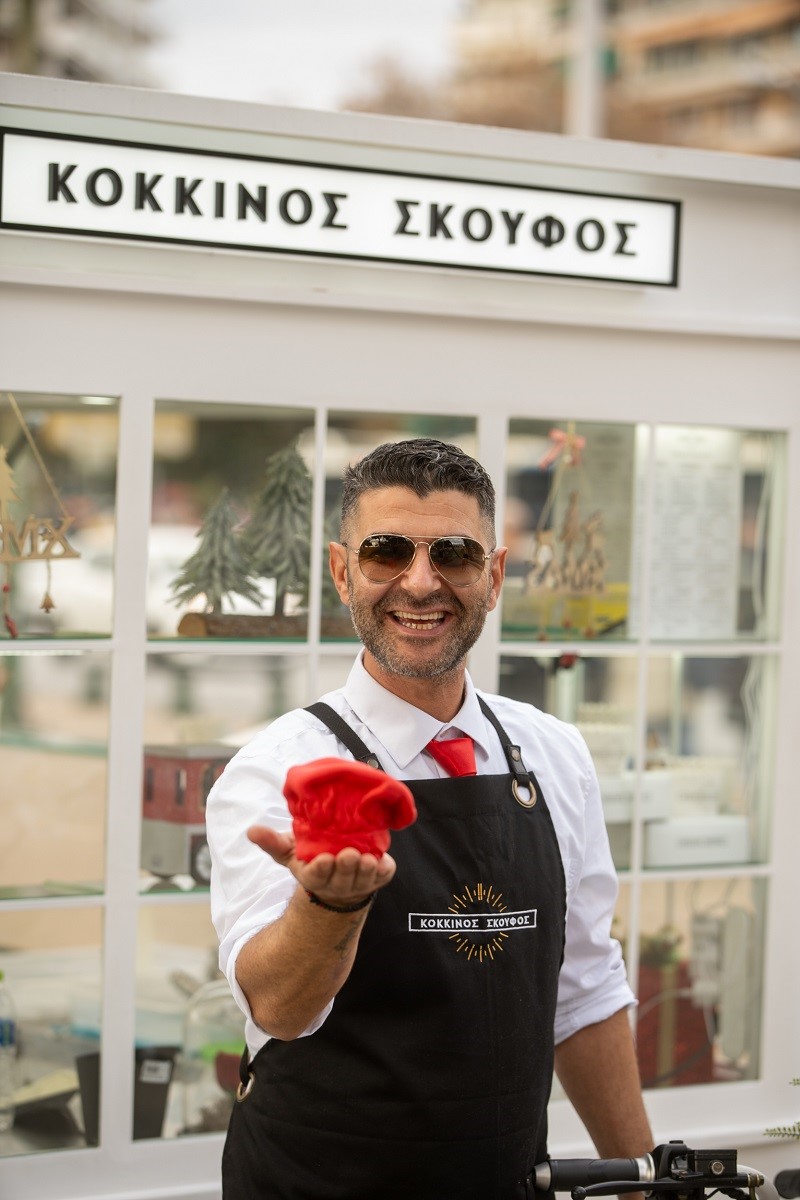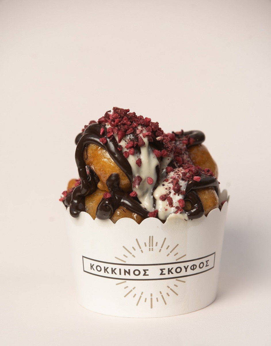 The story of Red Cap began in 2012, when Konstantinos Liapis, in the midst of the economic crisis, decided to take loukoumades—and his family recipe—out onto the street. A small cart with a red-and-white awning appeared next to the Thessaloniki Concert Hall. Above all stood out the pastry chef’s red cap, which ultimately gave the venture its name. An elderly customer once told him, “When you wear the cap, we know the loukoumades are ready.” And so the name remained, marking every step of what was then a brand-new project.