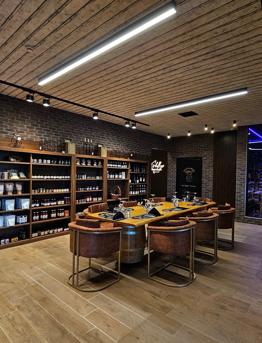 In a separate corner of the cellar, Shelbys’ premium and aged wines are carefully stored—special Greek labels, thoughtfully selected for those who appreciate oenological rarity.