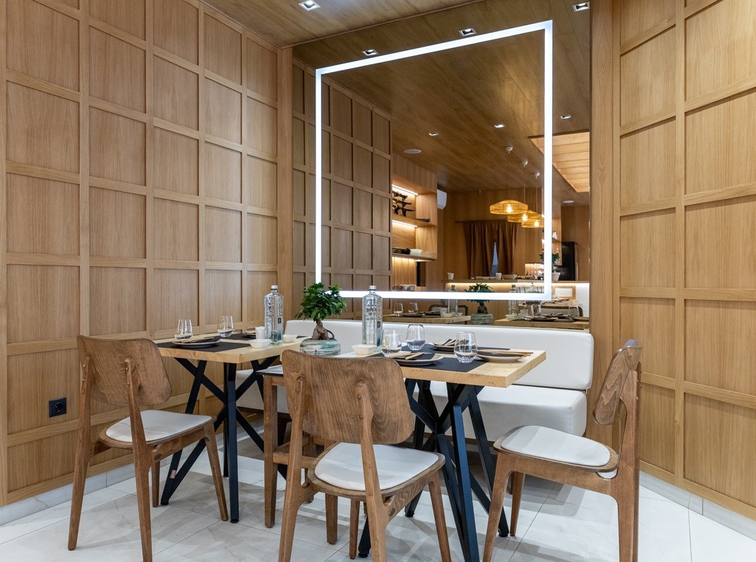 Inside the space decorated with wood and other natural materials, inextricably harmonized with the philosophy of Japan, where the visitor can be quiet, calm down, be in direct communication with the Chef and enjoy an overall culinary experience in a friendly atmosphere. You will leave behind everything that concerns you and you will be able to indulge in the unique flavors, which you will not find anywhere else in the city.