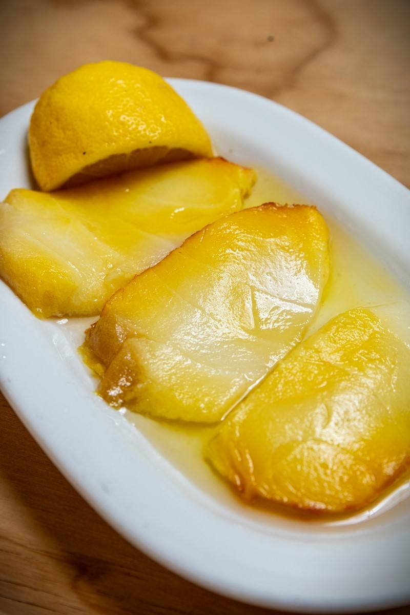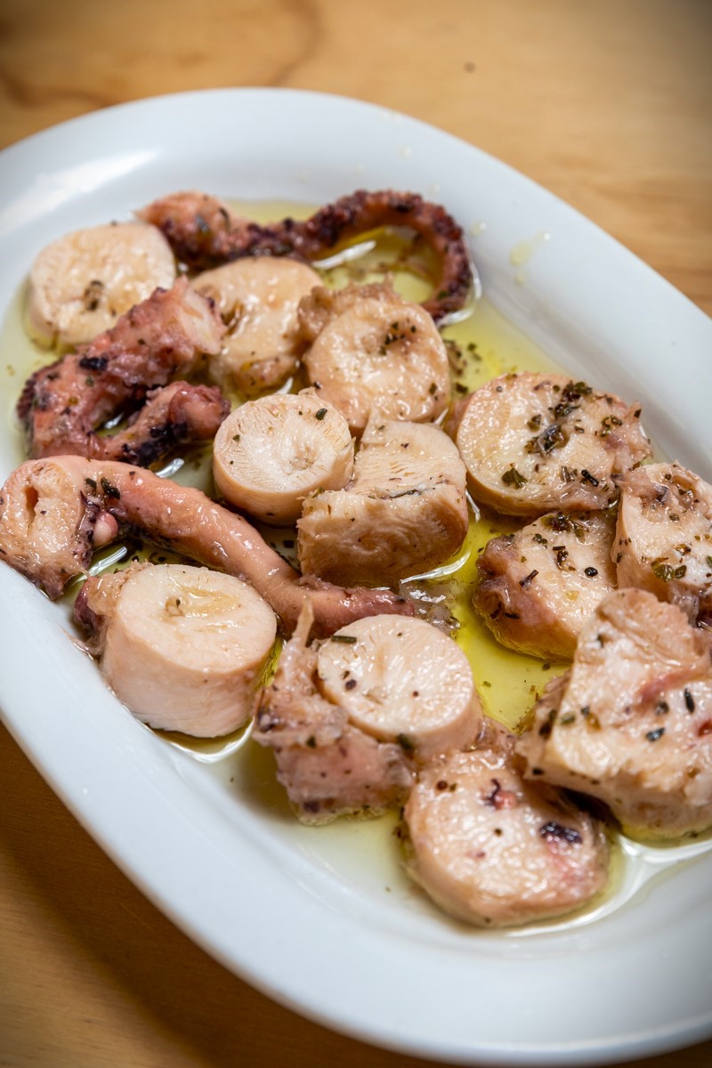 Naturally, products from Lesvos hold a prominent place on the menu. We suggest starting your meal with one of the most fundamental elements of the island’s culinary tradition: salt-cured fish, prepared in-house. Handmade and flavorful, they are the perfect entrée for a seafood-focused—or not only seafood—meal.