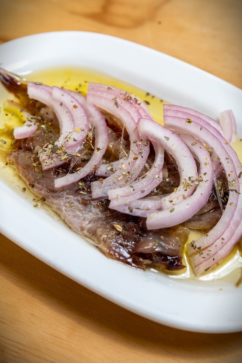 Mackerel, lakerda (cured bonito), and anchovies are among your choices, and you can enrich your meal with marinated anchovies, lemon shrimp, fresh handmade appetizers such as dolmadakia (stuffed vine leaves), and hand-cut fried potatoes. Of exceptional value on the menu are the fried zucchini blossoms—prepared just as they are on the island.