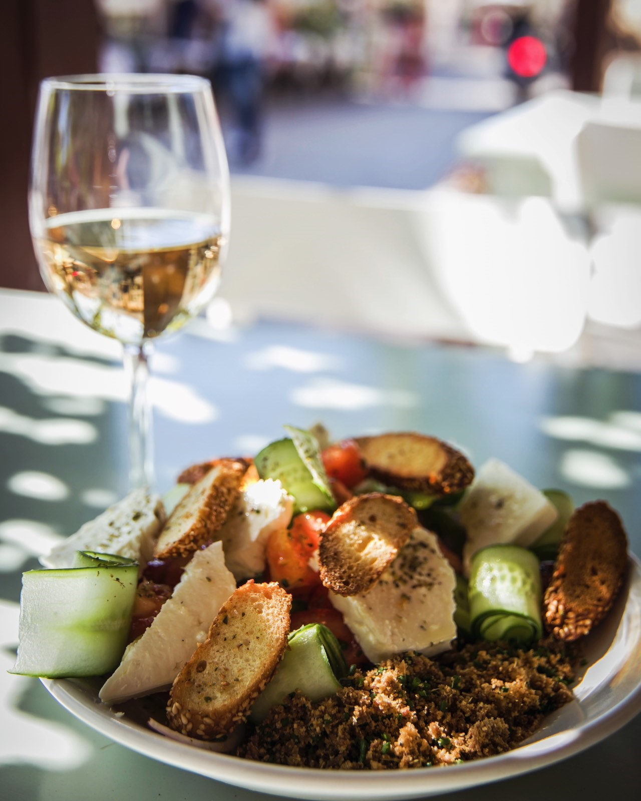 The wine and spirits list is equally rich with local and Greek selections. Carefully chosen tsipouro and ouzo, wines, beers, mastiha liqueur, limoncello, and mountovina (tsipouro with honeycomb) promise the perfect pairing for your meal — and even after it, refreshing cocktails will keep you lingering longer.