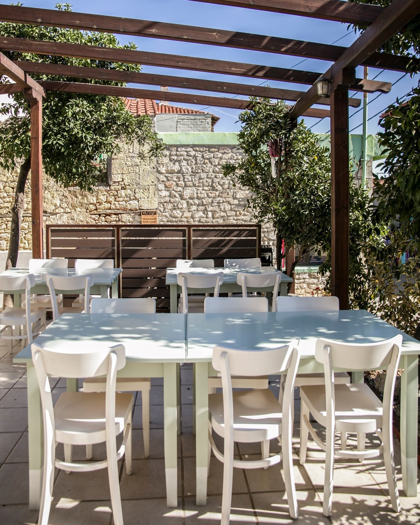 In the beautifully built stone setting of Vouka, which follows the local architecture, with bright colors and flowers, even the placemats gently remind you to enjoy every bite.